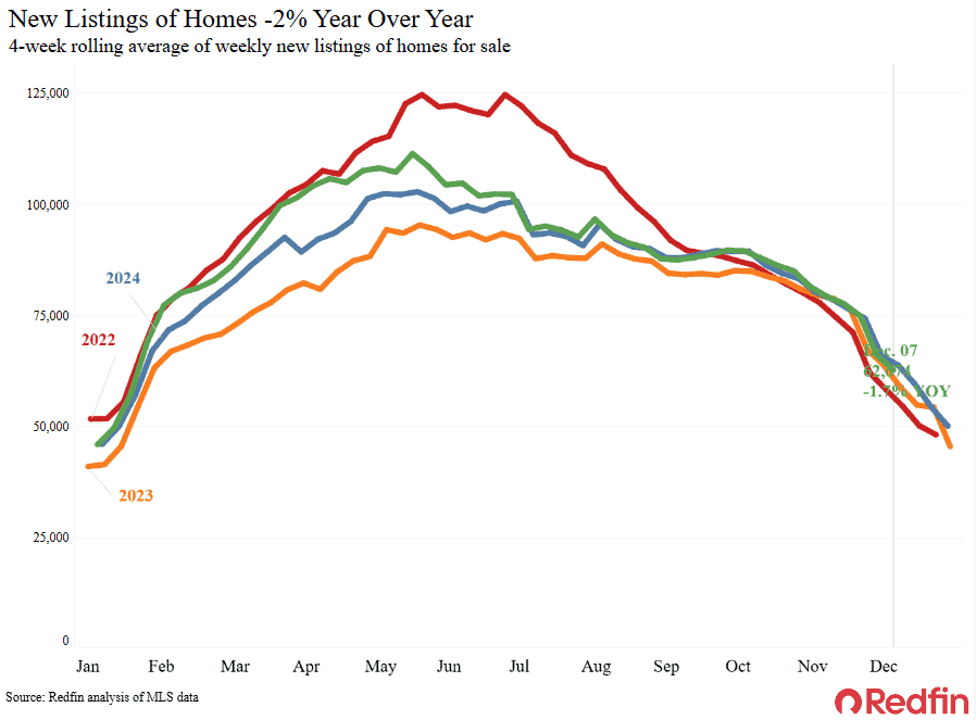 | New listings | 62,674 | -1.7% | Biggest decline of 2025 |